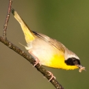 Common yellowthroat perched on a branch preparing to feed nestlings an insect