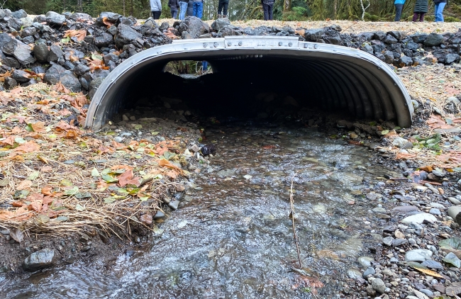 Completed culvert at Wisen Creek fish passage restoration site, WA