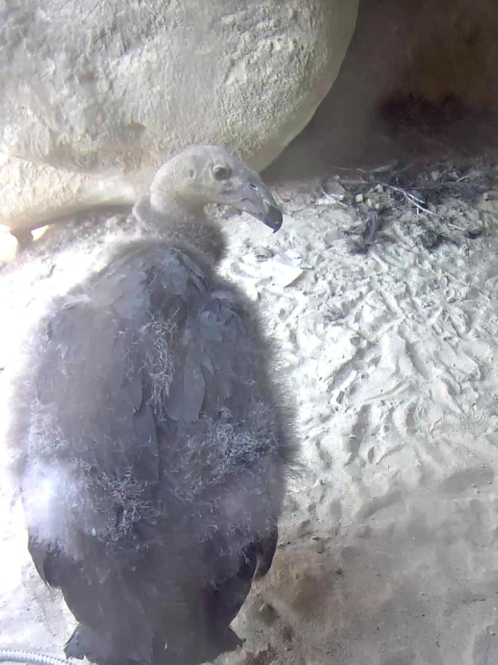 Condor #846 chick near a collection of feathers and twigs. Taken August 24, 2016. Credit: USFWS