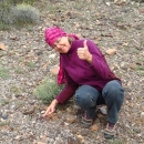 utherford signals with a thumbs-up the successful rediscovery of a rare Mojave Desert plant (Mimulus mohavensis) where it hadn't been seen for over 100 years.