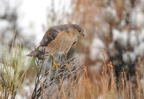 The Cooper's Hawk is a crow-sized woodland raptor that breeds throughout much of the United States, southern Canada, and northern Mexico.