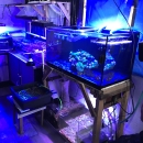 Coral in aquatic tanks under blue light during Lacey Act violation investigation.