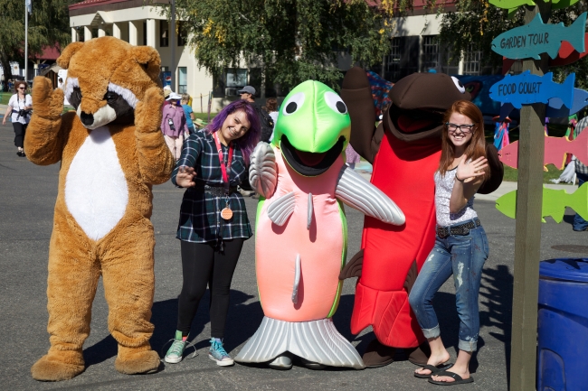Children parade with costumes, and visit with salmon costumed performers. Pacific Northwest Fisheries.