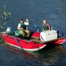 This is a picture of a couple waving as they ride by in a pontoon boat. Alaska is a land of awe-inspiring beauty and fish and wildlife spectacles, and the Kenai National Wildlife Refuge is a microcosm of all this wonderful state has to offer.