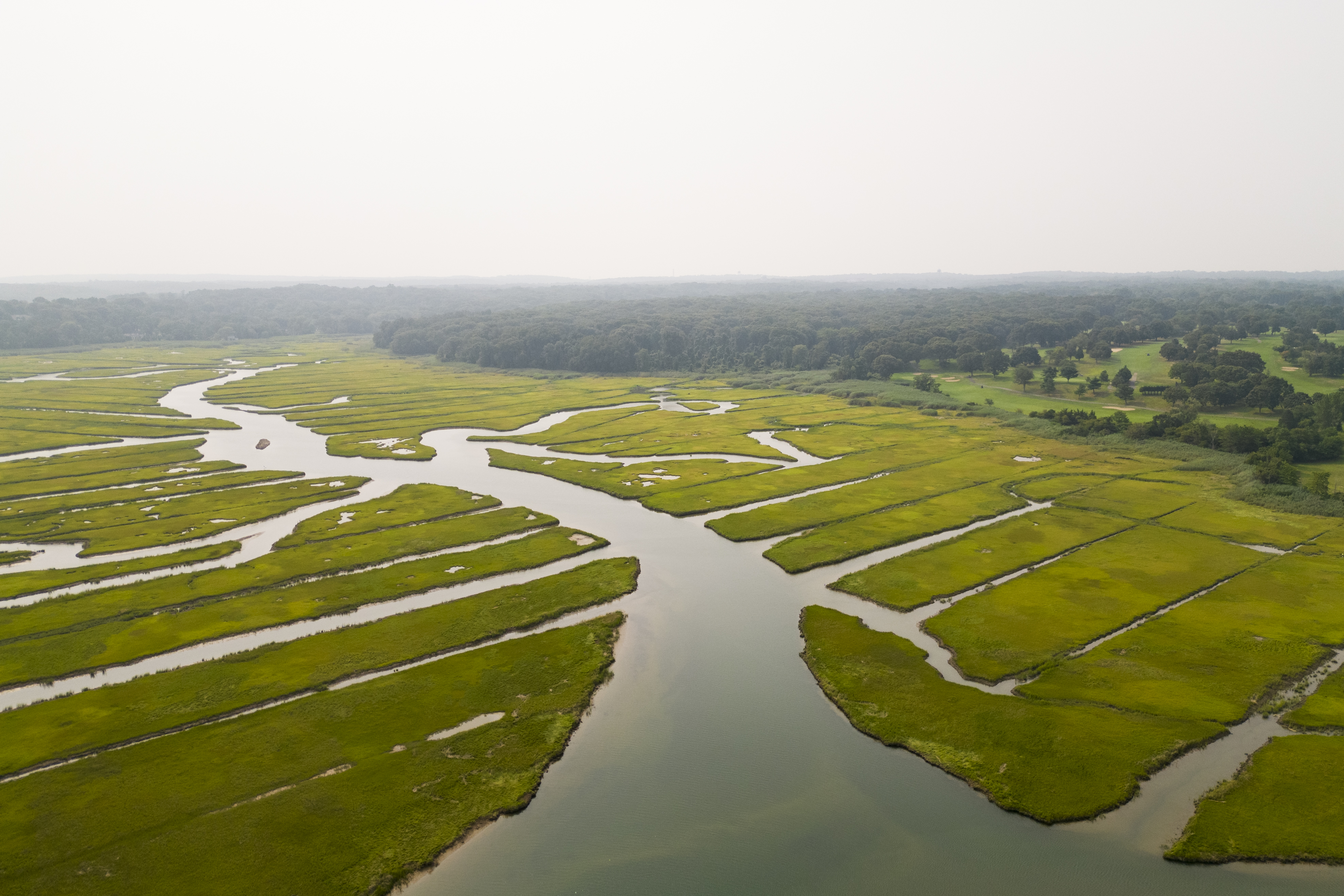 Aerial photo of mosquito ditches at Crab Meadow Marsh on the North Shore of Long Island, New York