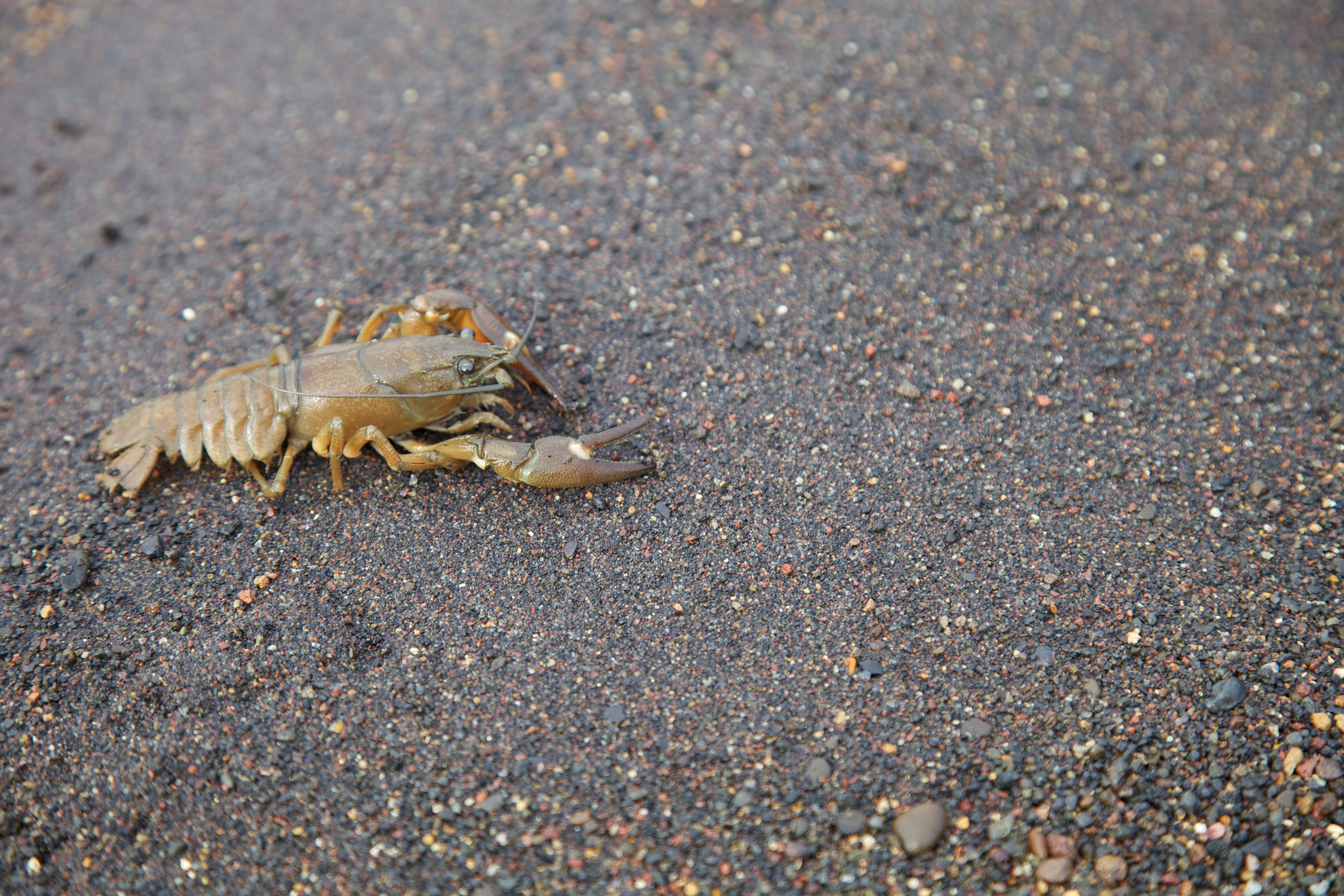 A crayfish on the shore of the Columbia River. Pacific Northwest Fisheries.