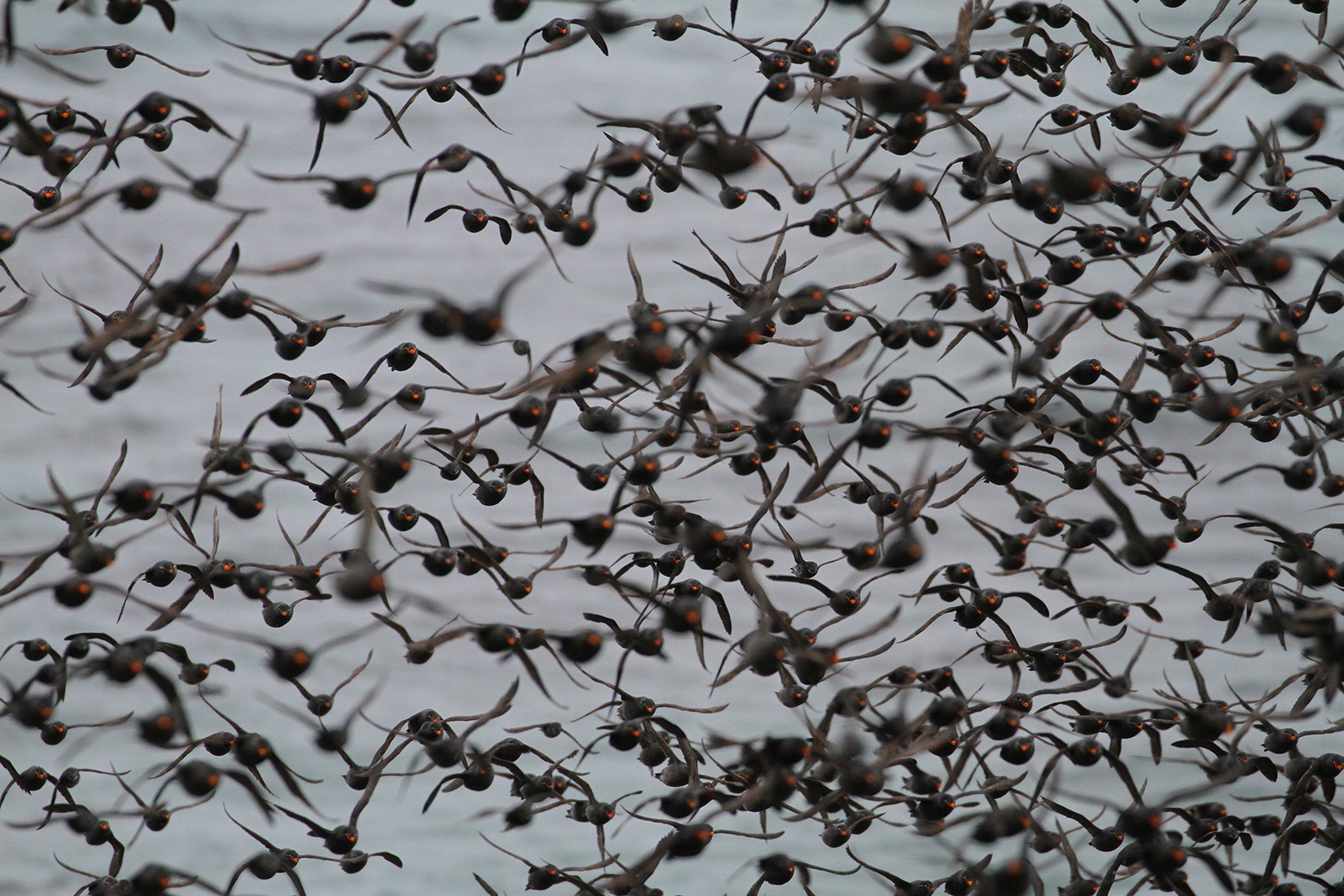Crested Auklet flying blur by Mckenzie Mudge