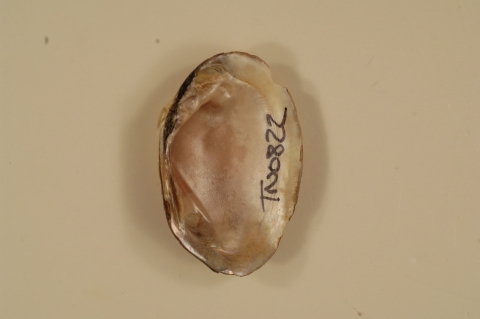 NCTC Freshwater Mussels Teaching Collection: Order: Unionoida Family: Unionidae Genus (ITIS): Villosa Species: trabalis (inside) Williams et al.: Use to be: Location Name: Little Chucky Crk, Green Co. Location State: TN