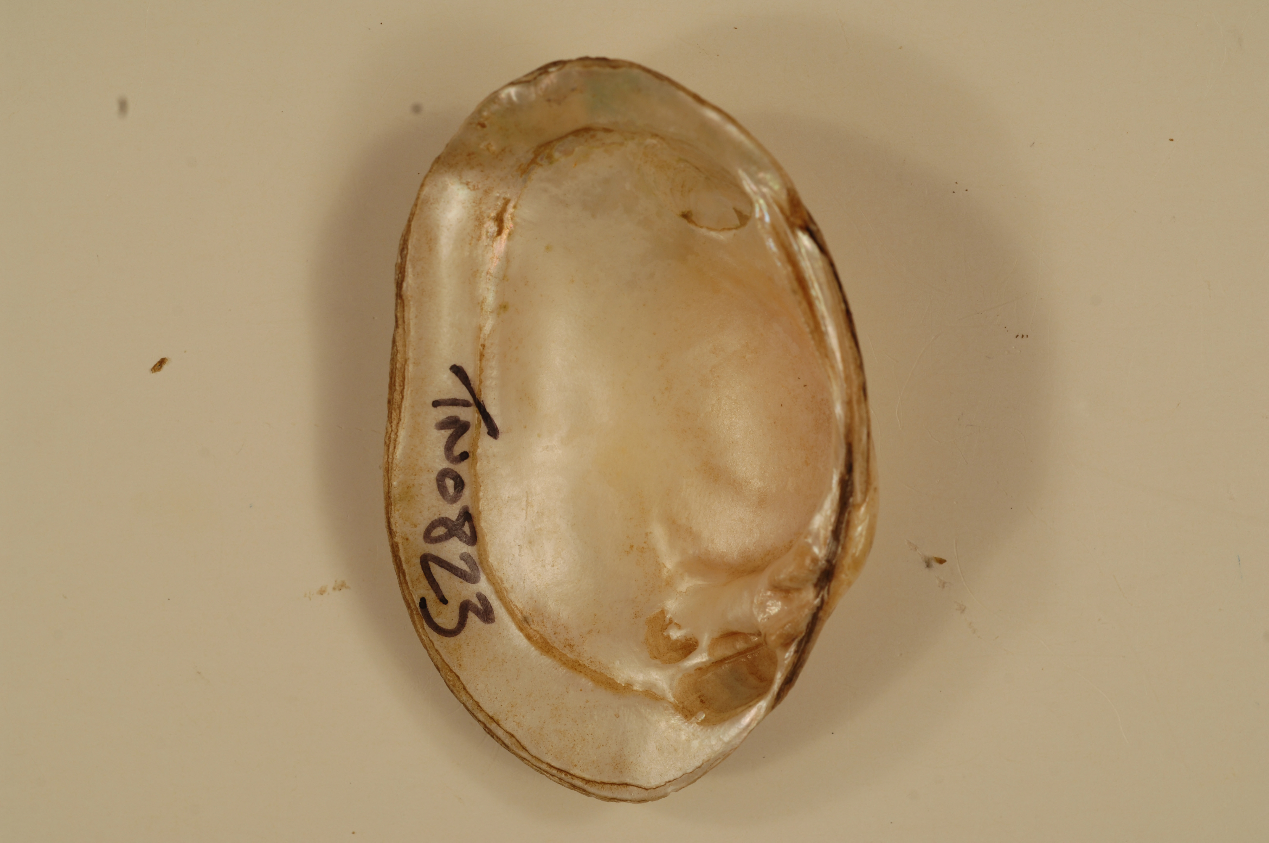NCTC Freshwater Mussels Teaching Collection: Order: Unionoida Family: Unionidae Genus (ITIS): Villosa Species: trabalis (inside) Williams et al.: Use to be: Location Name: Little Chucky Crk, Green Co. Location State: TN