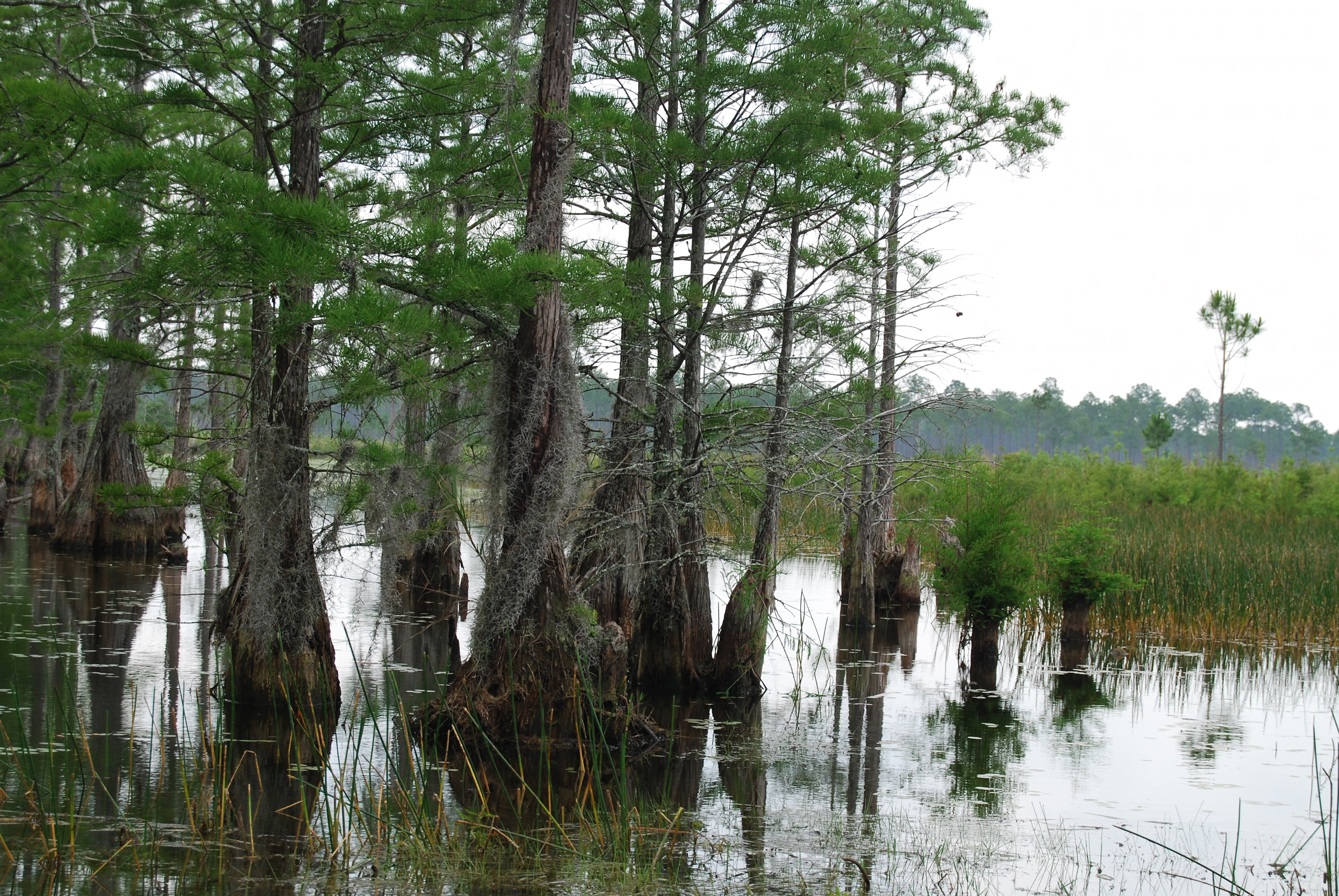 The refuge's vegetation communities are a mosaic of pine savannas and pinelands interspersed with wooden swamps and drainages, along with a small tract of estuarine marsh. These plant communities have also been called "coastal prairies", "pine barrens", "wet prairies", "pitcher plant bogs", and "cypress flats".