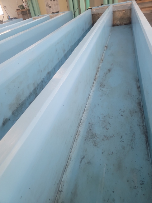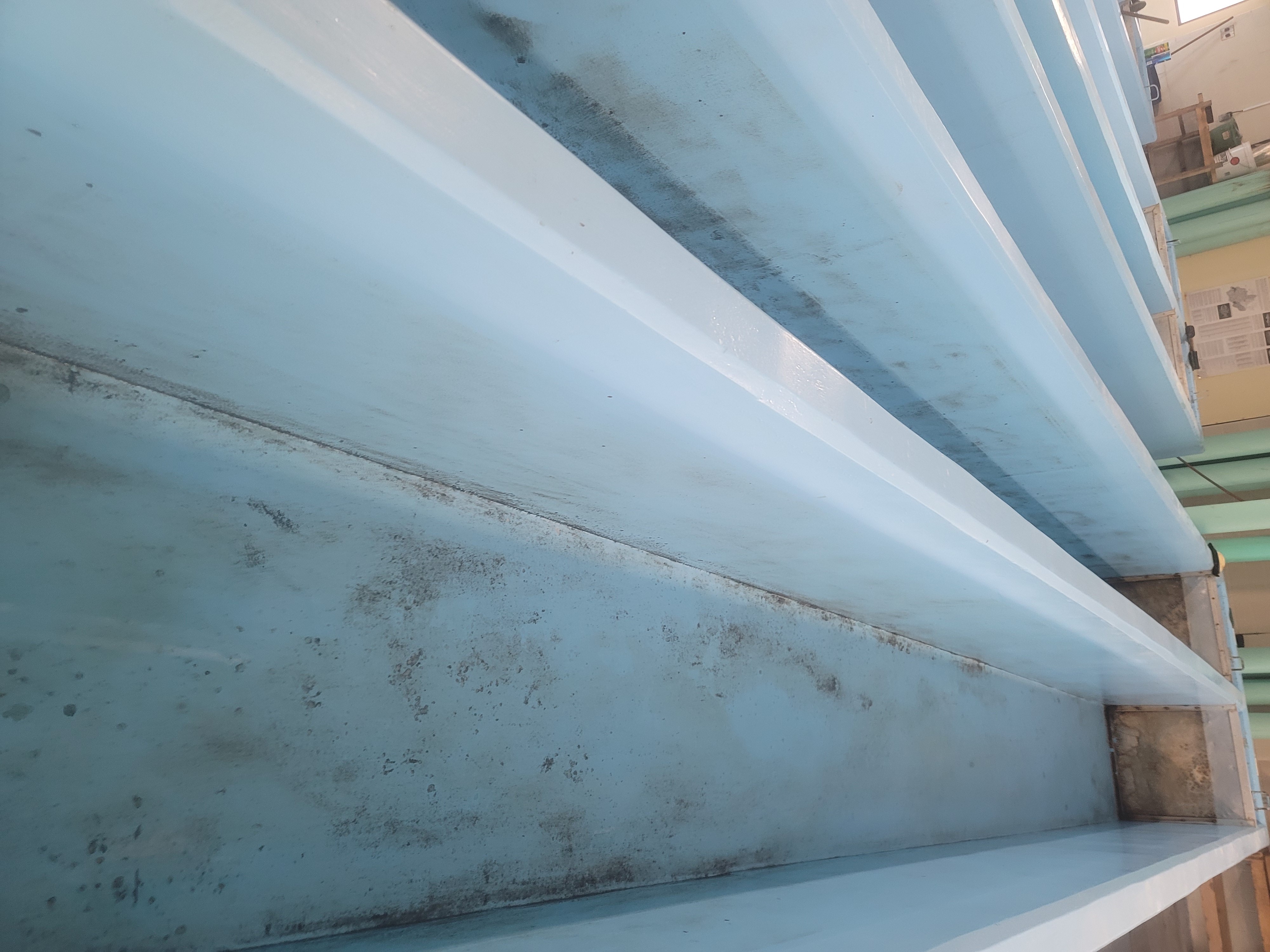 The epoxy paint undergoes a lot of scrubbing to get it looking like this again after manganese and fall organic matter deposits