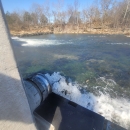 Dale Hollow NFH fish stocking 2025 - fish being discharged out of a fish truck into a fast moving river