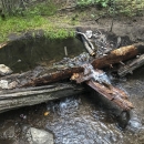 During their sampling efforts in one of the native bull trout streams, the fish survey crew was surprised to discover the creek had been dug out and impounded with wood, rocks, logs and plastic to create several deep pools. Photo courtesy of Oregon Department of Fish and Wildlife