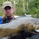 Service employee, Dan Spencer, holding an Elwha River Chinook salmon prior to release.