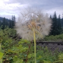 A dandelion grows amongst the wild blackberries along the tracks adjacent to Dworshak National Fish hatchery. The railroad is still active today.