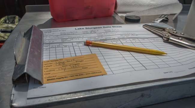 Data sheets for record keeping in lake sturgeon research