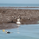 Floating island of debris and injured birds in lagoon at Midway Atoll after a tsunami generated by a powerful earthquake off the coast of Japan struck the refuge at 11:36 PM on Thursday, March 10th and continued for the next few hours. On March 15, FWS released an official announcement stating that surveys of the three islands reveal that more than 110,000 albatross chicks – about 22% of this year’s albatross production – were lost as a result of the tsunami and two severe winter storms that hit in January and February. At least 2,000 adults also died. Image taken from USFWS Pacific Region Flickr page.