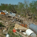 Debris covers a levee at Bayou Sauvage National Wildlife Refuge in Louisiana after Hurricane Katrina in 2005.