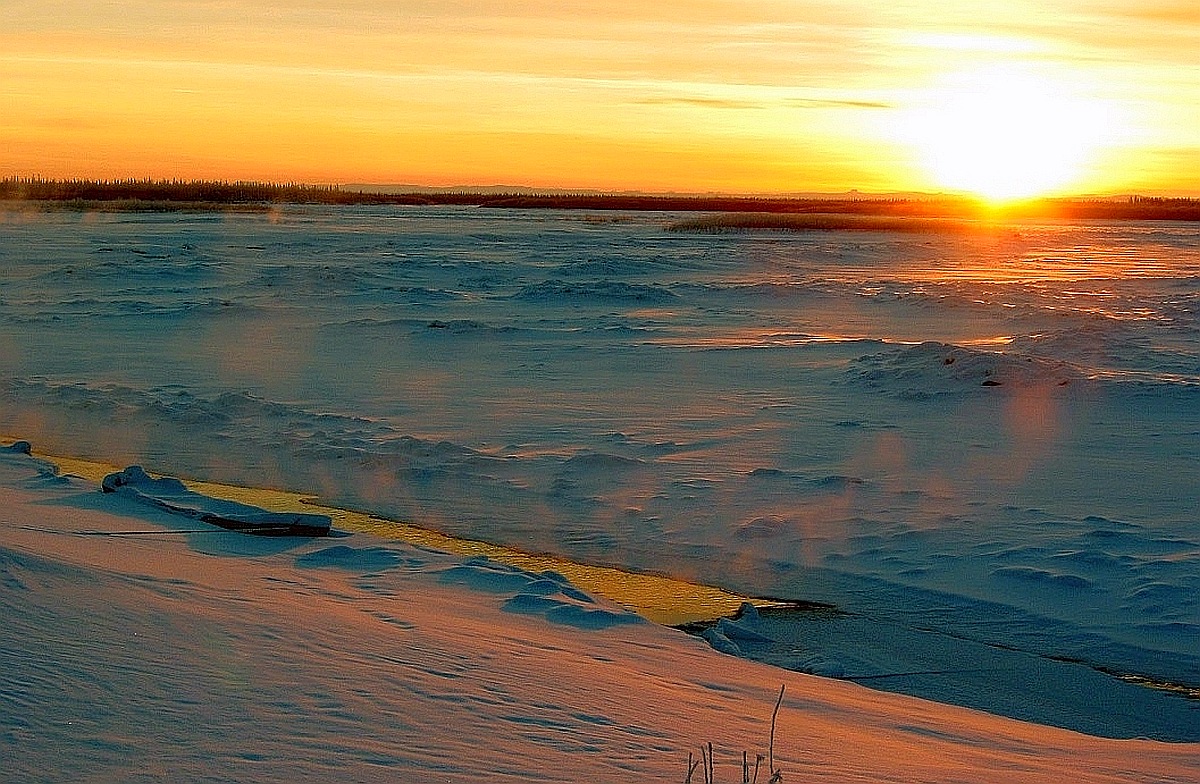 December sun, Yukon River, Yukon Flats National Wildlife Refuge in Alaska.