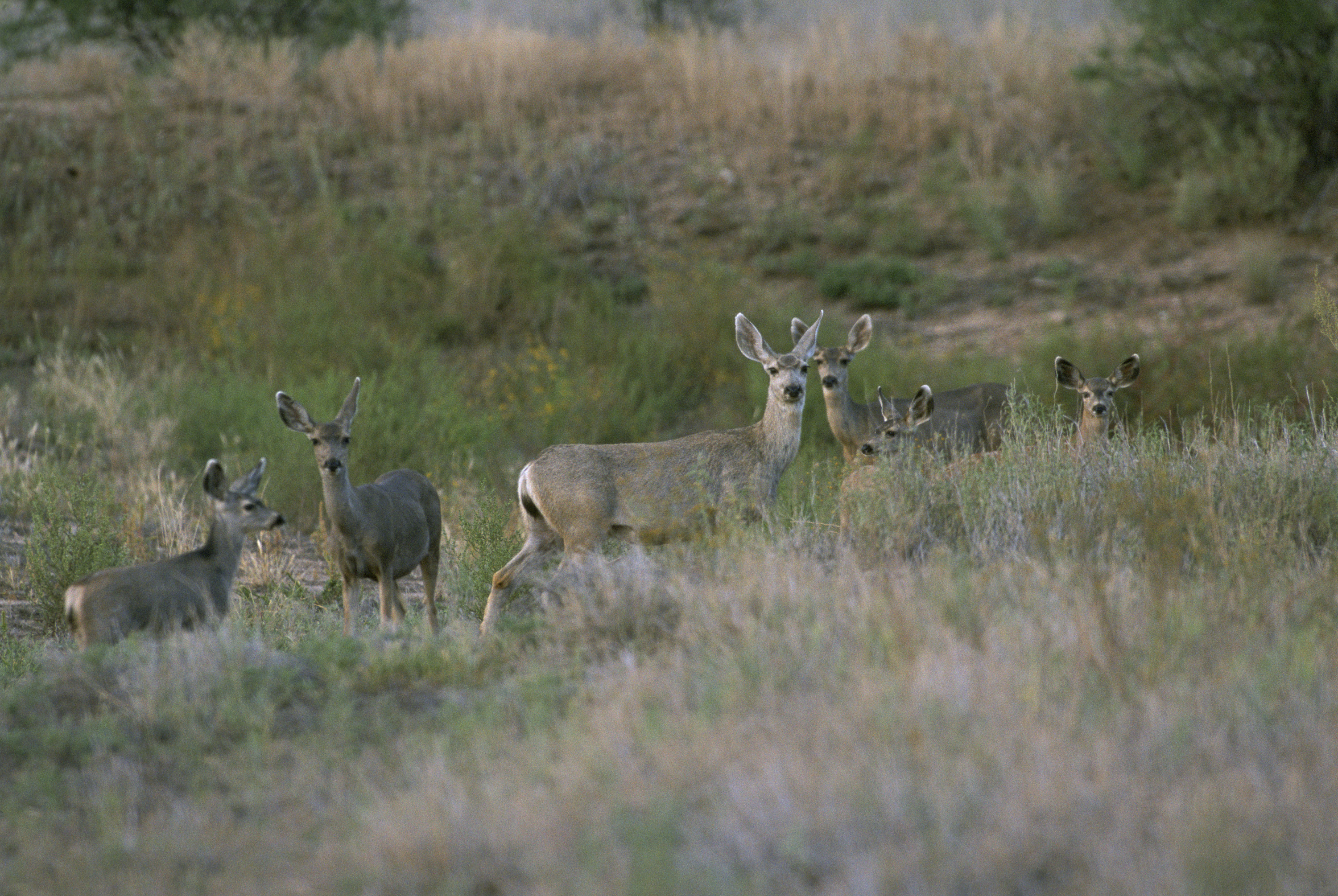 A herd of deer pause long enough to provide a photographic moment.