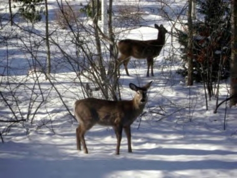 Deer in snow at Monomoy National Wildlife Refuge, MA. Image taken from USFWS Northeast Region Flickr page.