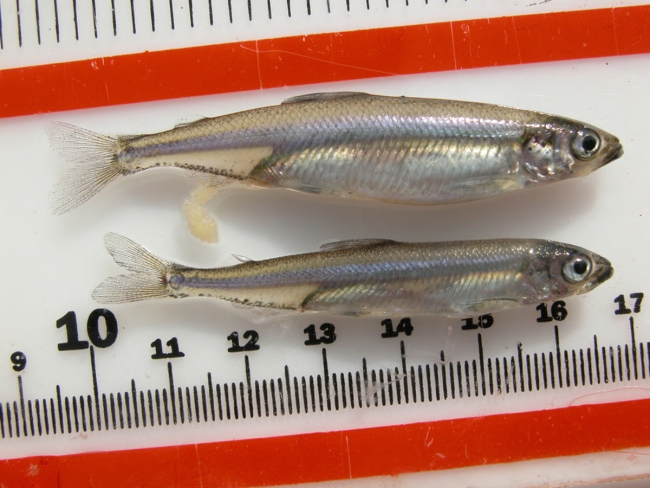 Two delta smelt for a size comparison.