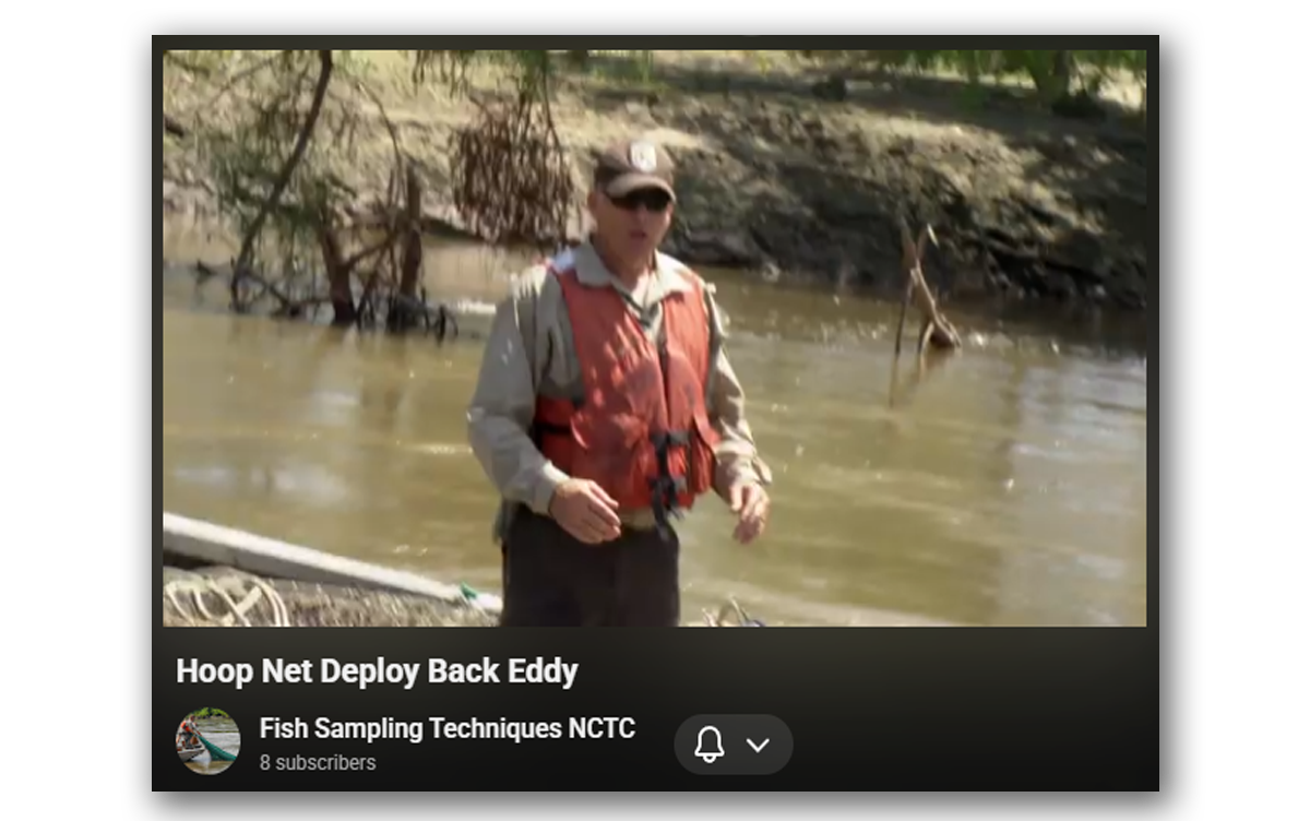 Deployment in back-eddy (reverse current), intermediate-sized hoop net, anchor and stake selection and use