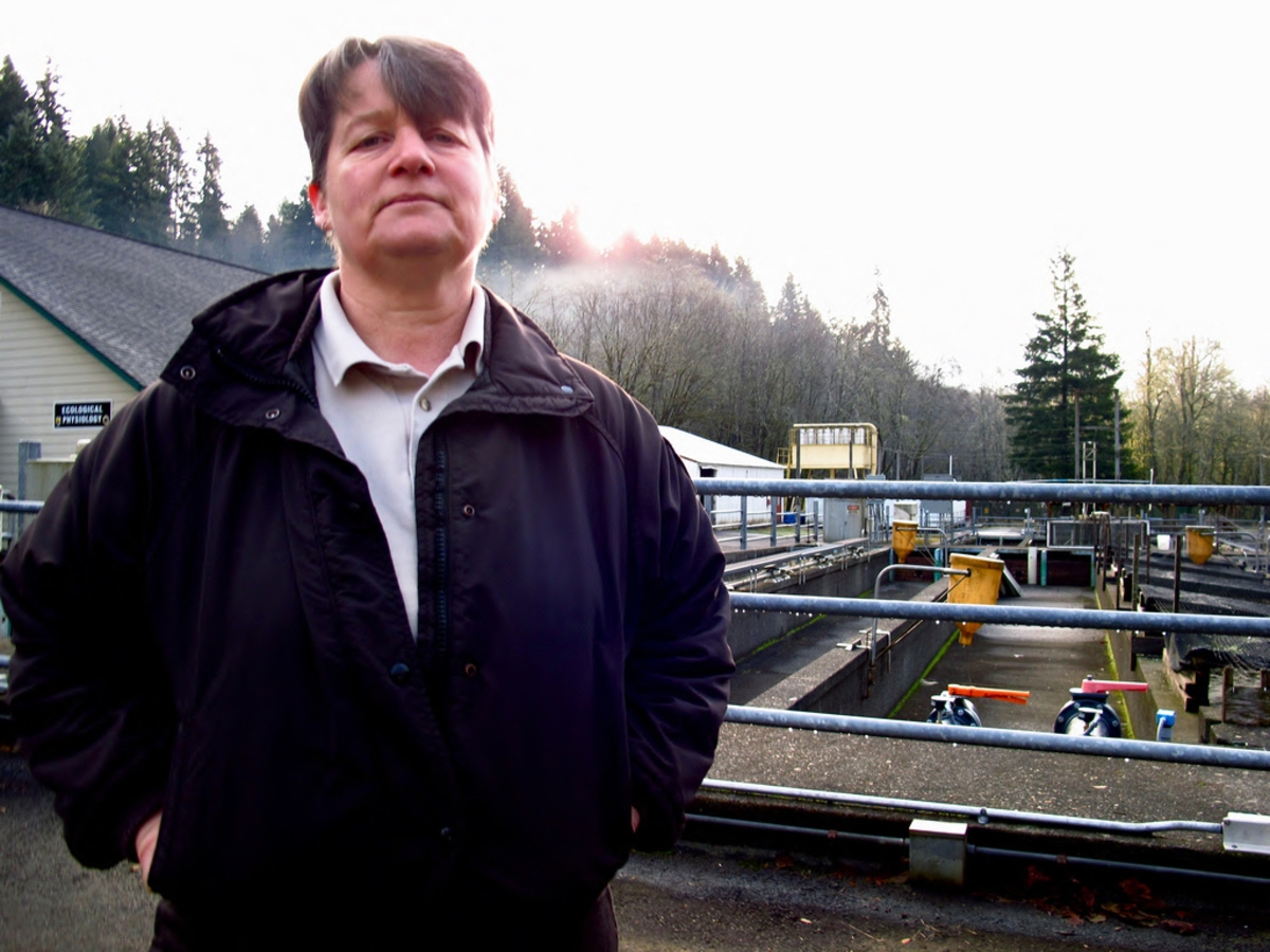 Patty Crandell, the Deputy Center Director in front of the holding ponds