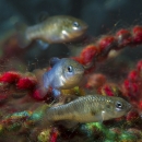 The Devils Hole pupfish population dipped to only 35 identified individuals in 2013. Although the U.S. Fish and Wildlife Service has been successful in establishing a colony of pupfish in their 100,000 gallon refuge tank, predation by beetles has made recovery of eggs to create a captive-raised laboratory population nearly impossible. Credit: Olin Feuerbacher/USFWS