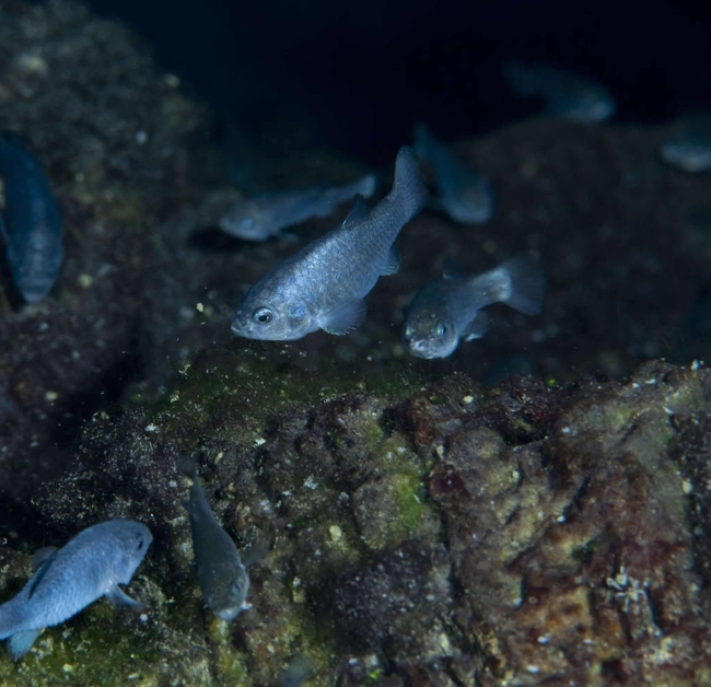 The Devils Hole pupfish was listed as endangered in 1967. This iridescent blue inch-long fish's only natural habitat is in the 93 degree waters of Devils Hole, located within the Ash Meadows National Wildlife Refuge, Nye County, Nevada, which is a detached unit of Death Valley National Park.