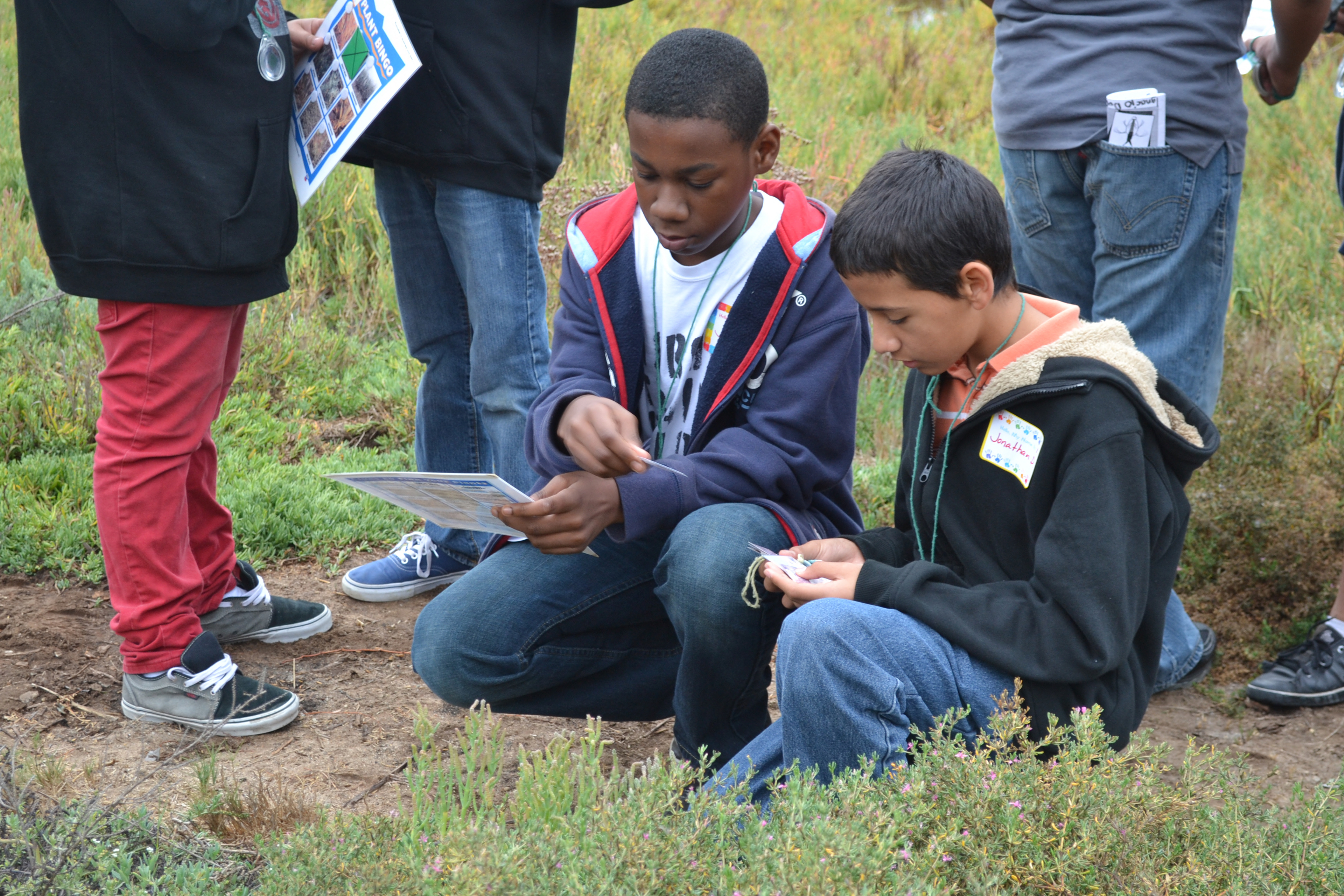 Refuge Environmental education program where students discuss the differences in salt marsh plants.