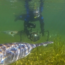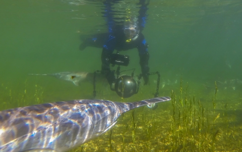 Diver photographing paddlefish