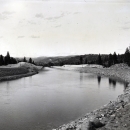 Looking down the newly constructed diversion channel at Leavenworth National Fish Hatchery in May of 1940.