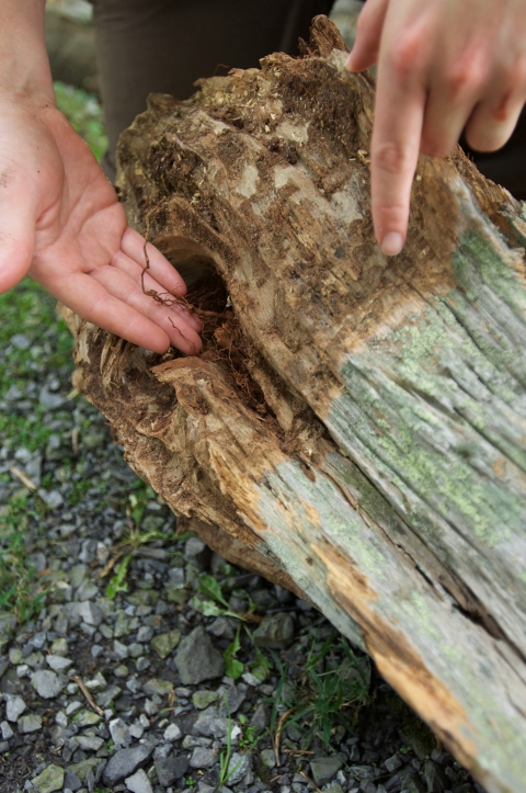 U.S. Fish and Wildlife Service employee, Casey Johnson, documenting a Longleaf Pine stump