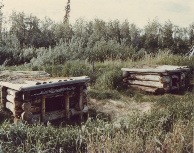 Dog houses counstructed of logs.