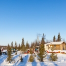 Several dogsled teams racing in the Kobuk 440 stop to rest at the Paniqsigvik shelter cabin on Selawik National Wildlife Refuge in Alaska.