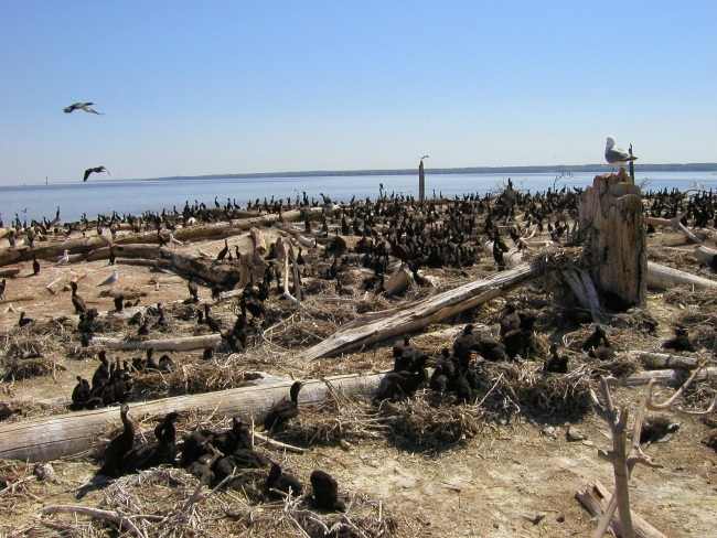 Double-crested cormorant chick colony