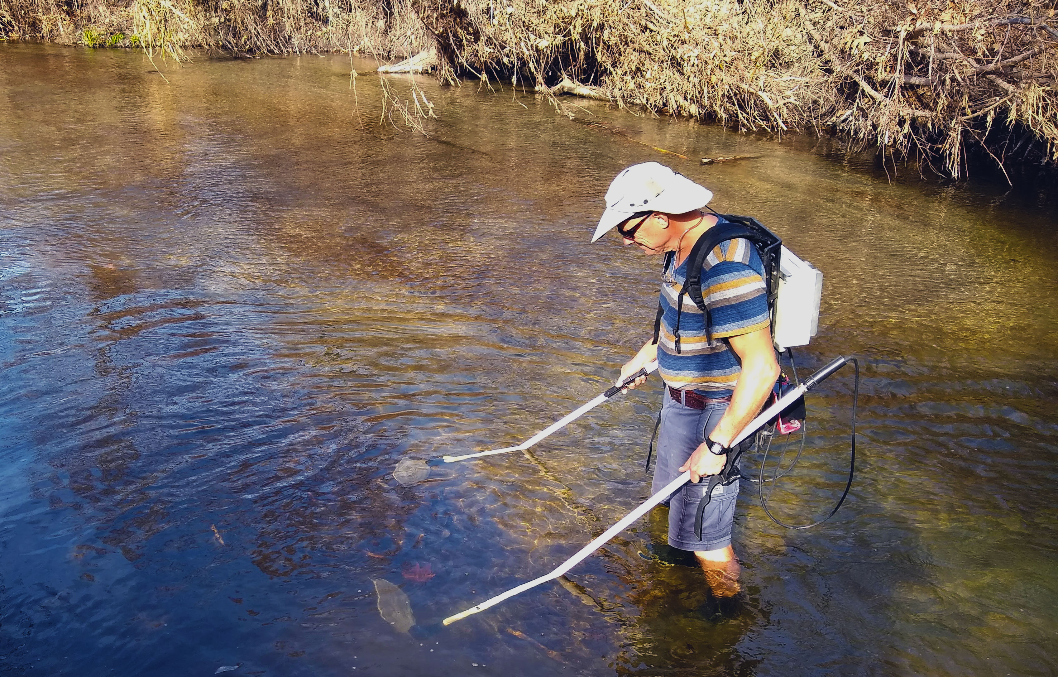 Stewart Reid surveying lamprey habitat in the Santa Margarita River.