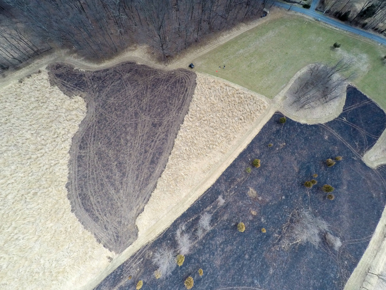 Aerial photograph of prescribed burn taken by a drone.