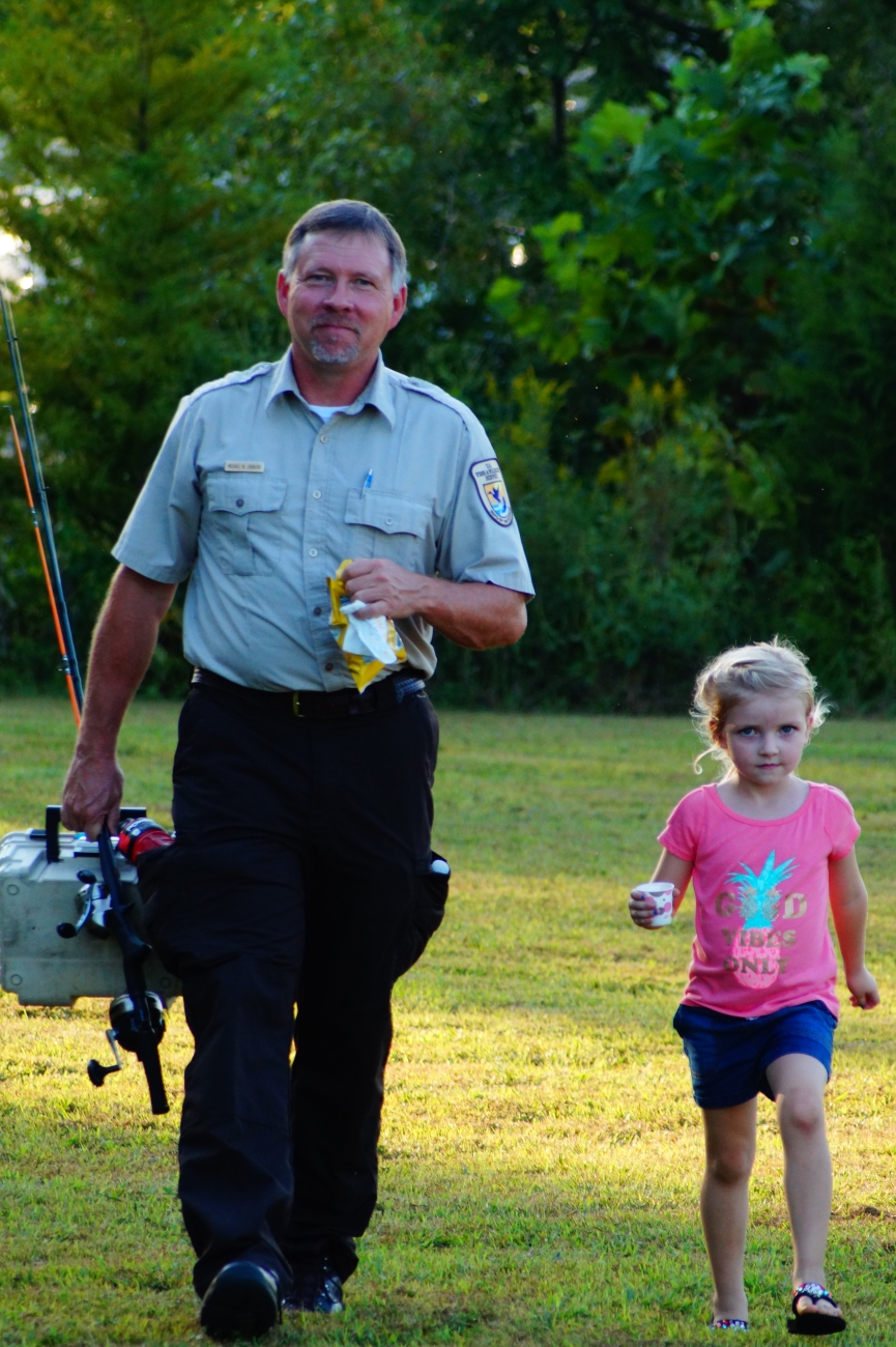 Michael Johnson with his granddaughter at a refuge family fishing event.