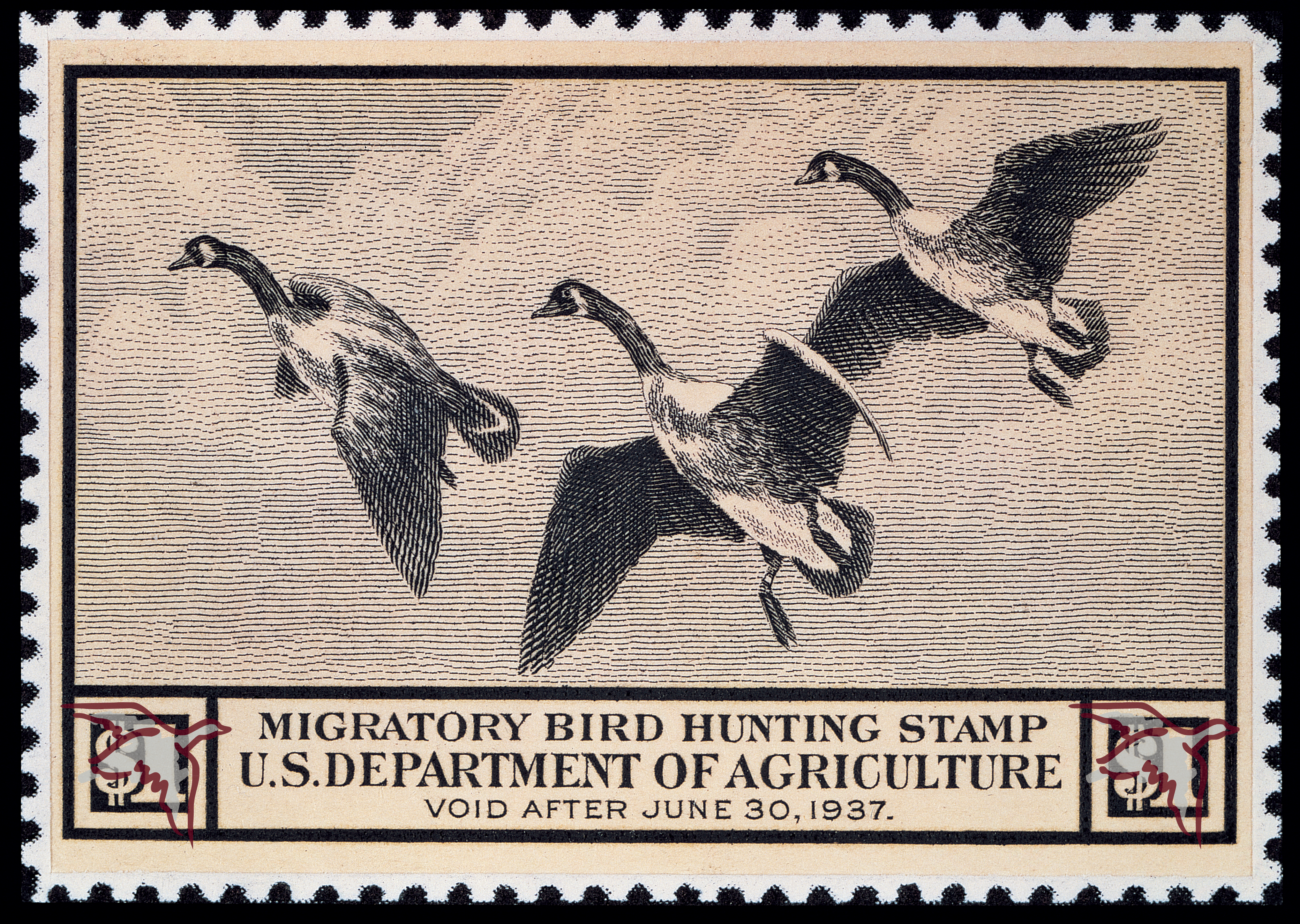 Inscription: Front - "U.S. Department of Agriculture. Void after June 30, 1937. Migratory Bird Hunting Stamp. $1."