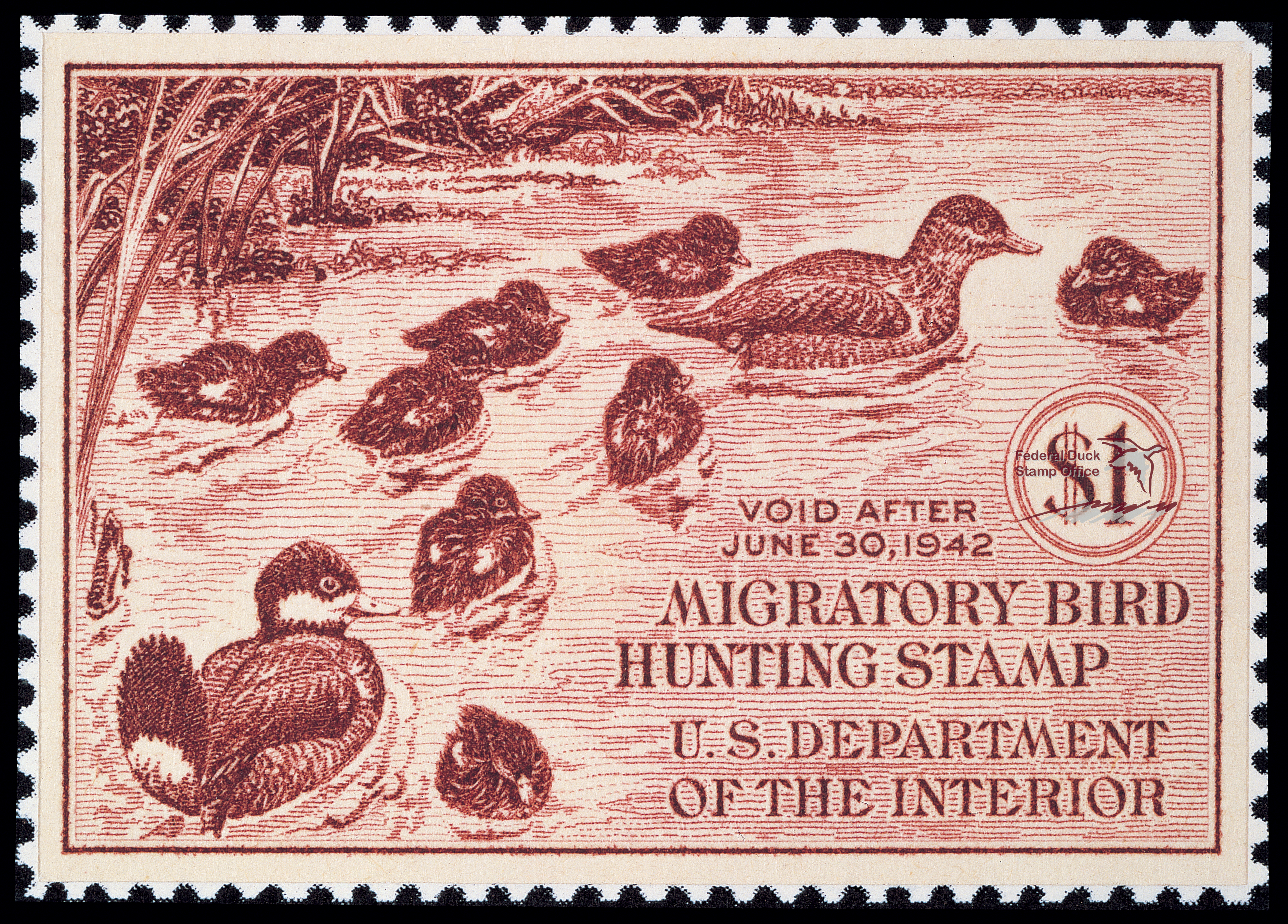 Inscription: Front - "U.S. Department of the Interior. Void after June 30, 1942. Migratory Bird Hunting Stamp. 1 $. "