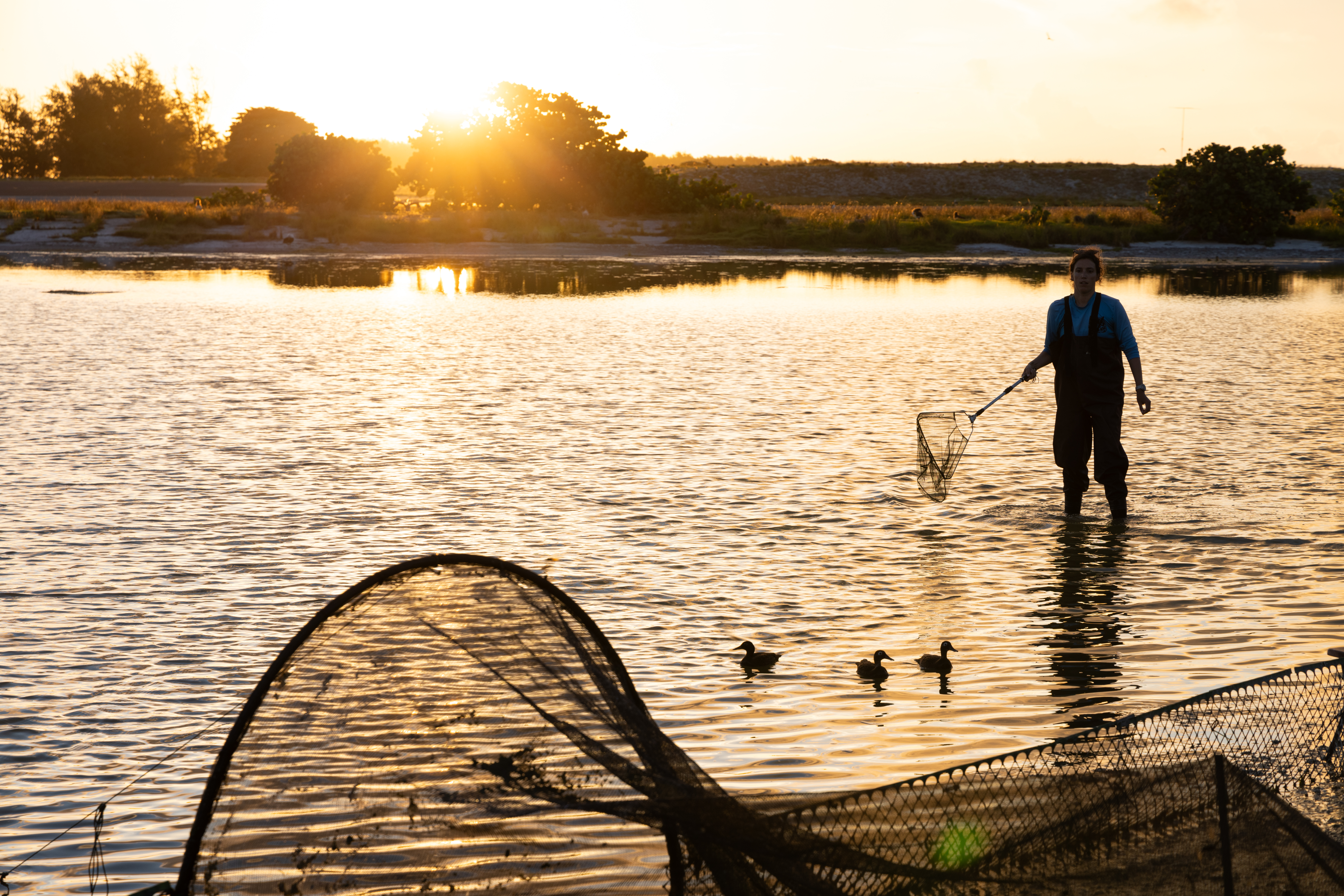 Members of the Duck Team capture endangered Laysan ducks at Catchment on Midway Atoll National Wildlife Refuge during the Seabird Protection Project.
