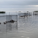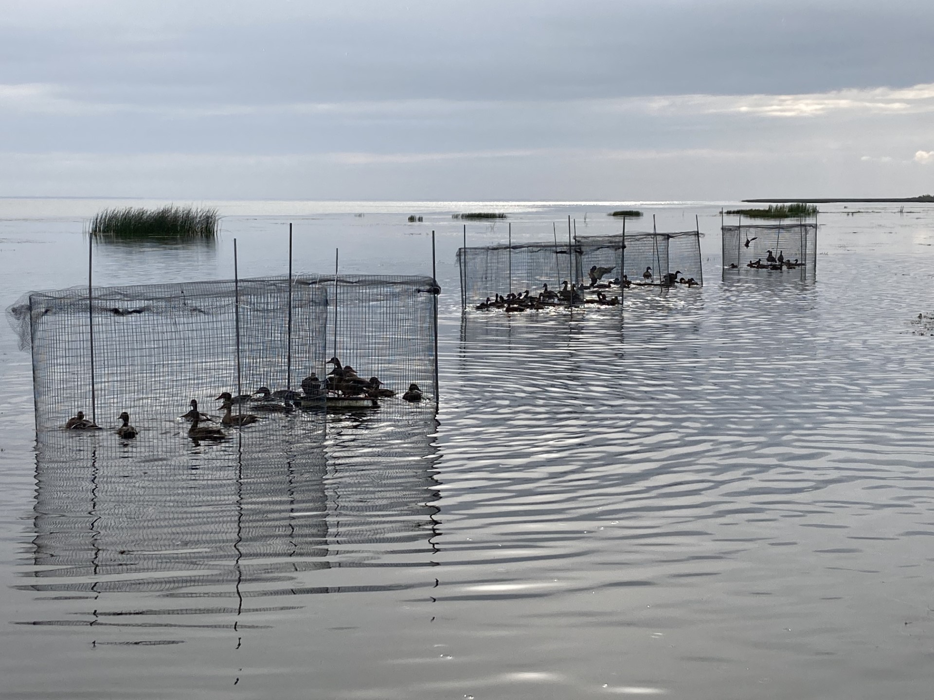 The ducks are in the swim-in traps. This picture was taken during the 2023 Waterfowl Banding Operations.