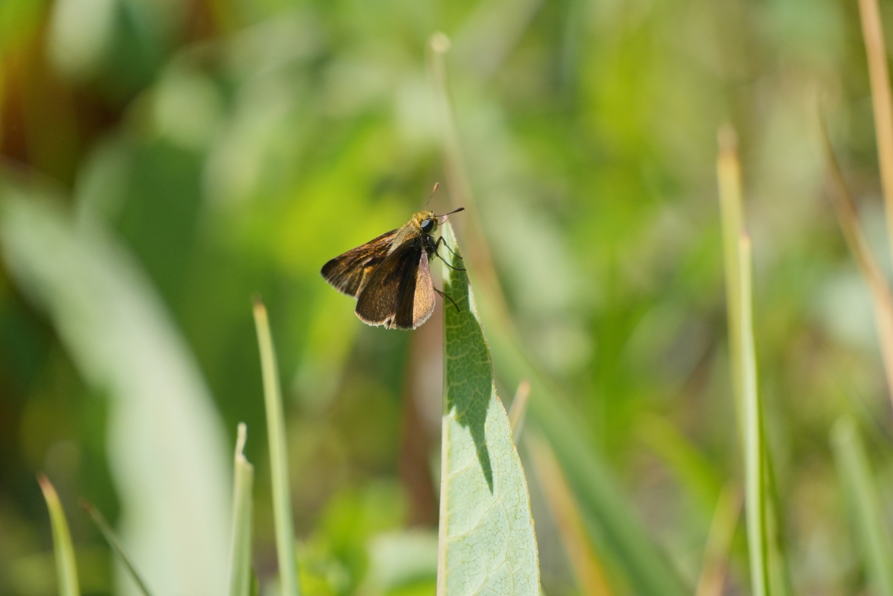 Dun skipper (Euphyes vestris) resting on a leaf.