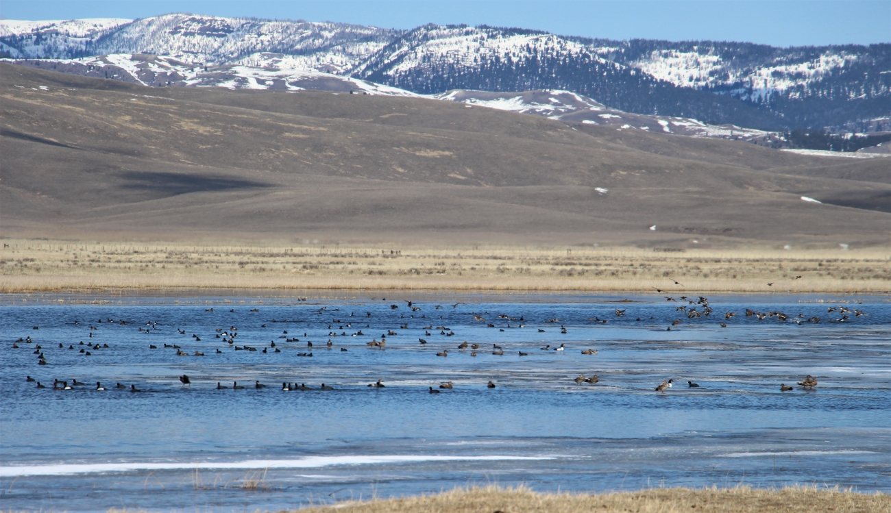In the wilderness at Red Rock Lakes National Wildlife Refuge, numerous species of waterfowl congregate and rest on an icy, but thawing Lower Red Rock Lake after arriving from return spring migration. Photo by Cortez Rohr/USFWS.
