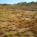 The upper salt marsh habitat of the eastern black rail, composed of undulating waves of salt hay (Spartina patens).