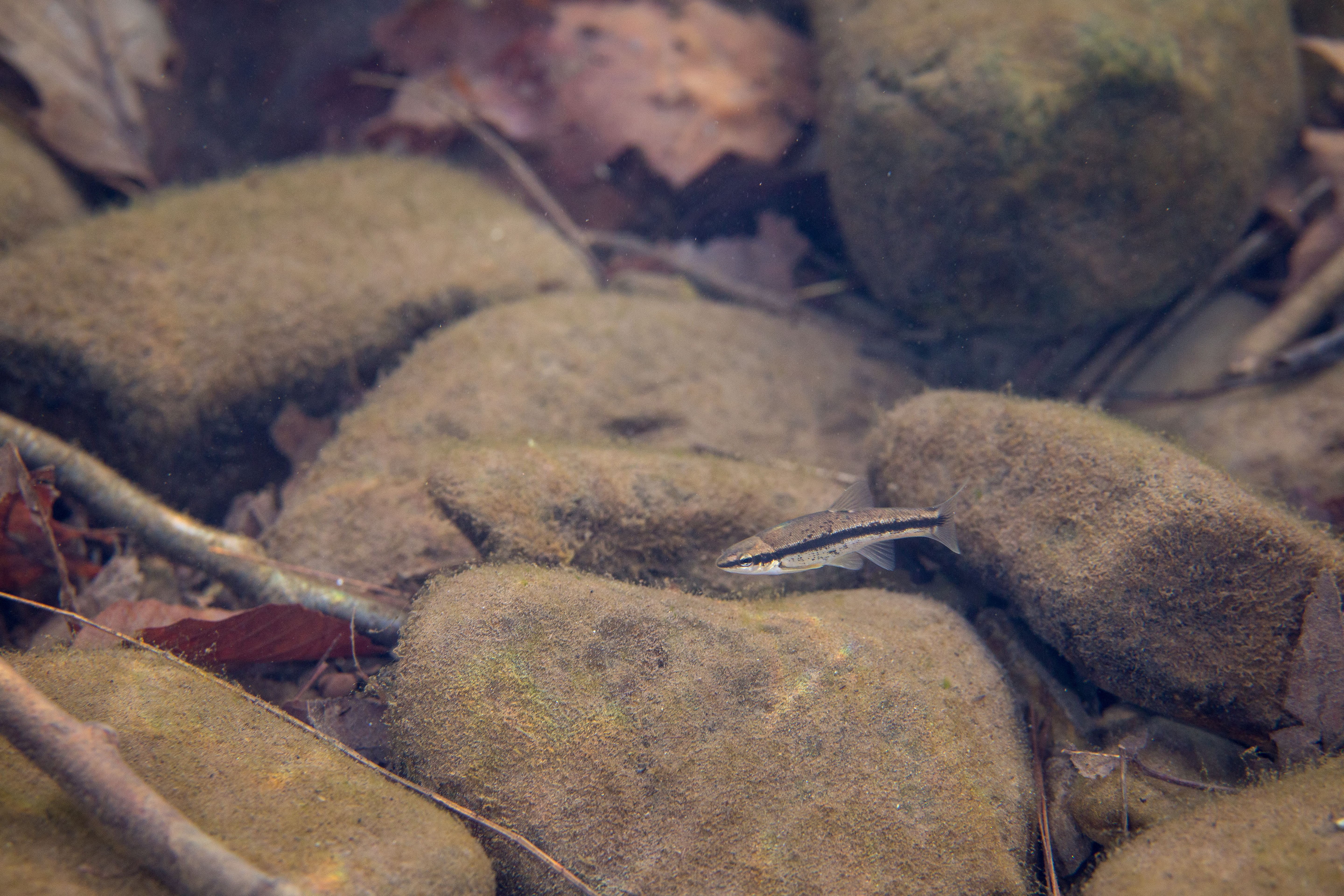 Eastern blacknose dace on a rocky stream bottom.