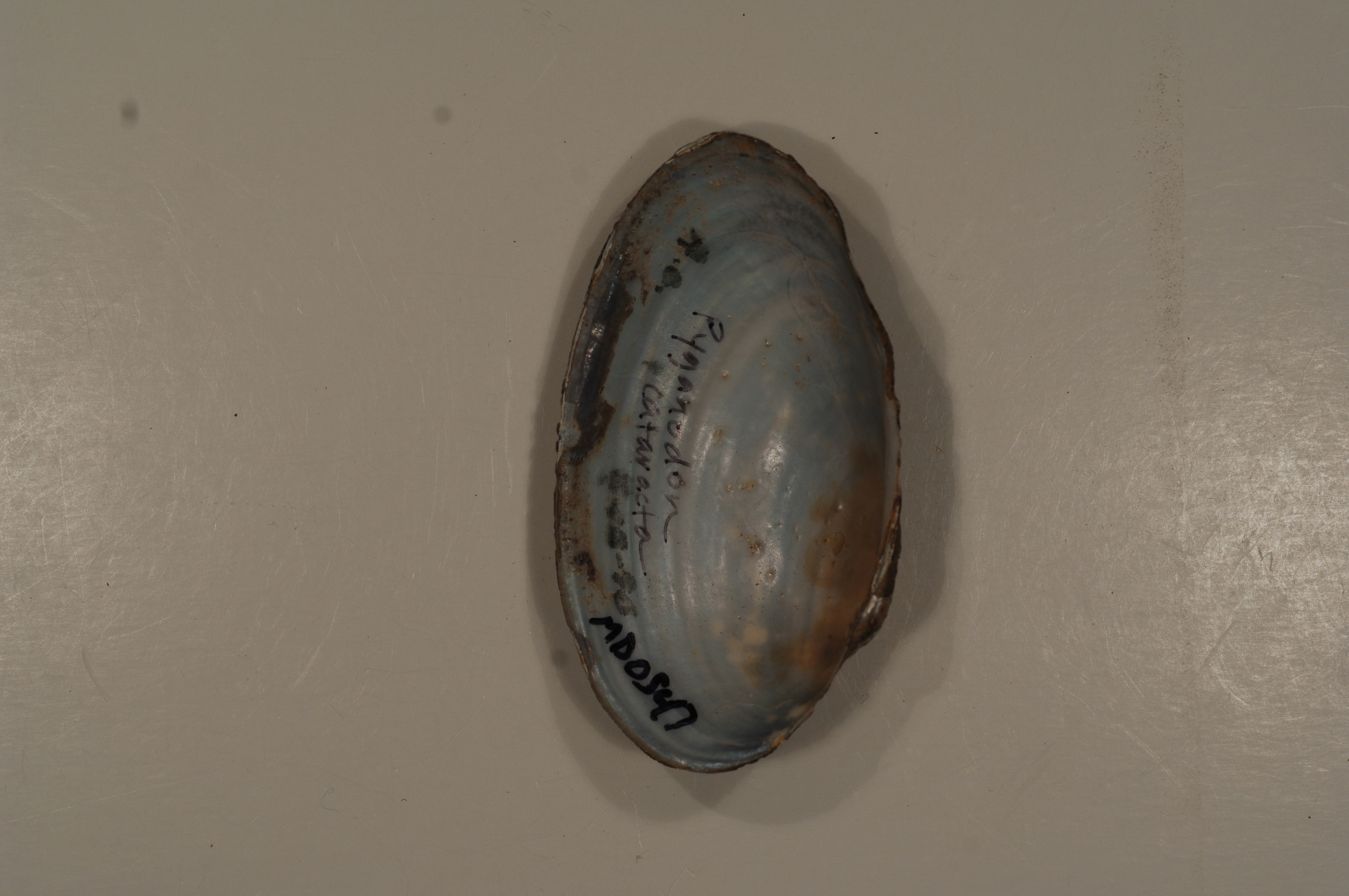 NCTC Freshwater Mussels Teaching Collection: Order: Unionoida Family: Unionidae Genus (ITIS): Pyganodon Species: cataracta (inside) Williams et al.: Use to be: Location Name: Location State: MD