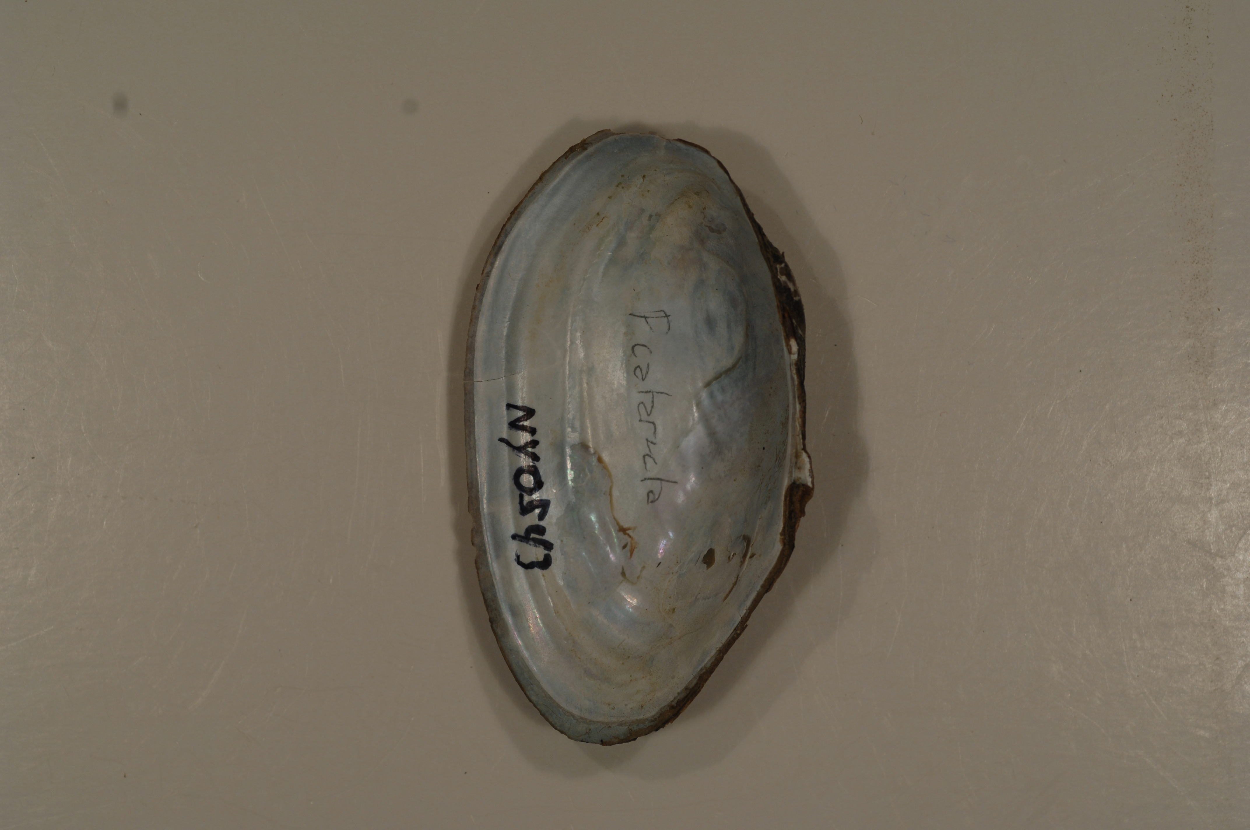 NCTC Freshwater Mussels Teaching Collection: Order: Unionoida Family: Unionidae Genus (ITIS): Pyganodon Species: cataracta (inside) Williams et al.: Use to be: Location Name: Location State: NY